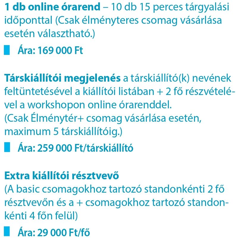 A KIÁLLÍTÓI CSOMAGOKAT tartalmazó nyomtatható kiajánlónk pdf. formátumban innen tölthető le.